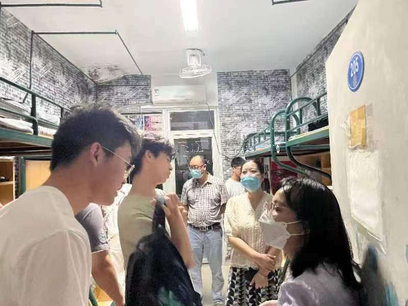 为了进一步了解疫情防控下学生们的思想动态和生活状态,及时帮助学生调整状态应对特殊时期的学习与生活模式。9月7日下午,今年会官网党委副书记(主持工作)陈达颖、党委副书记吴思锋带领学院各年级辅导员和学生班级负责人走访学生宿舍看望今年会官网同学。