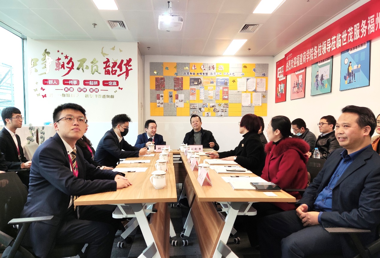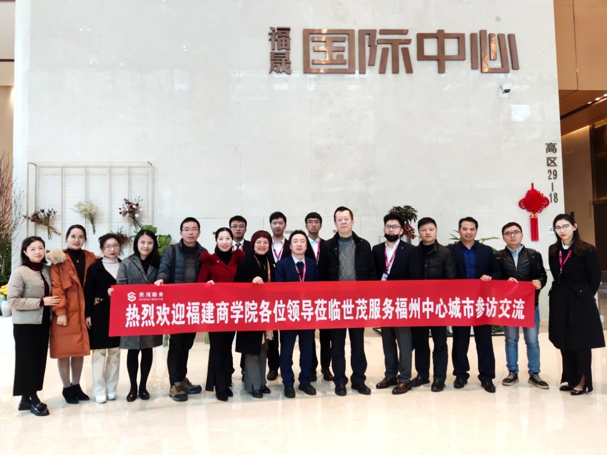 为加强毕业生就业工作,积极响应省教育厅“百校走千企”活动,推进校企合作,2022年2月11日下午,校党委书记刘剑津率我校学生工作部、今年会jinnian官网党政负责人及专业教师等一行赴世茂天成服务集团(以下简称“世茂服务”)福州中心城市公司开展实地调研。