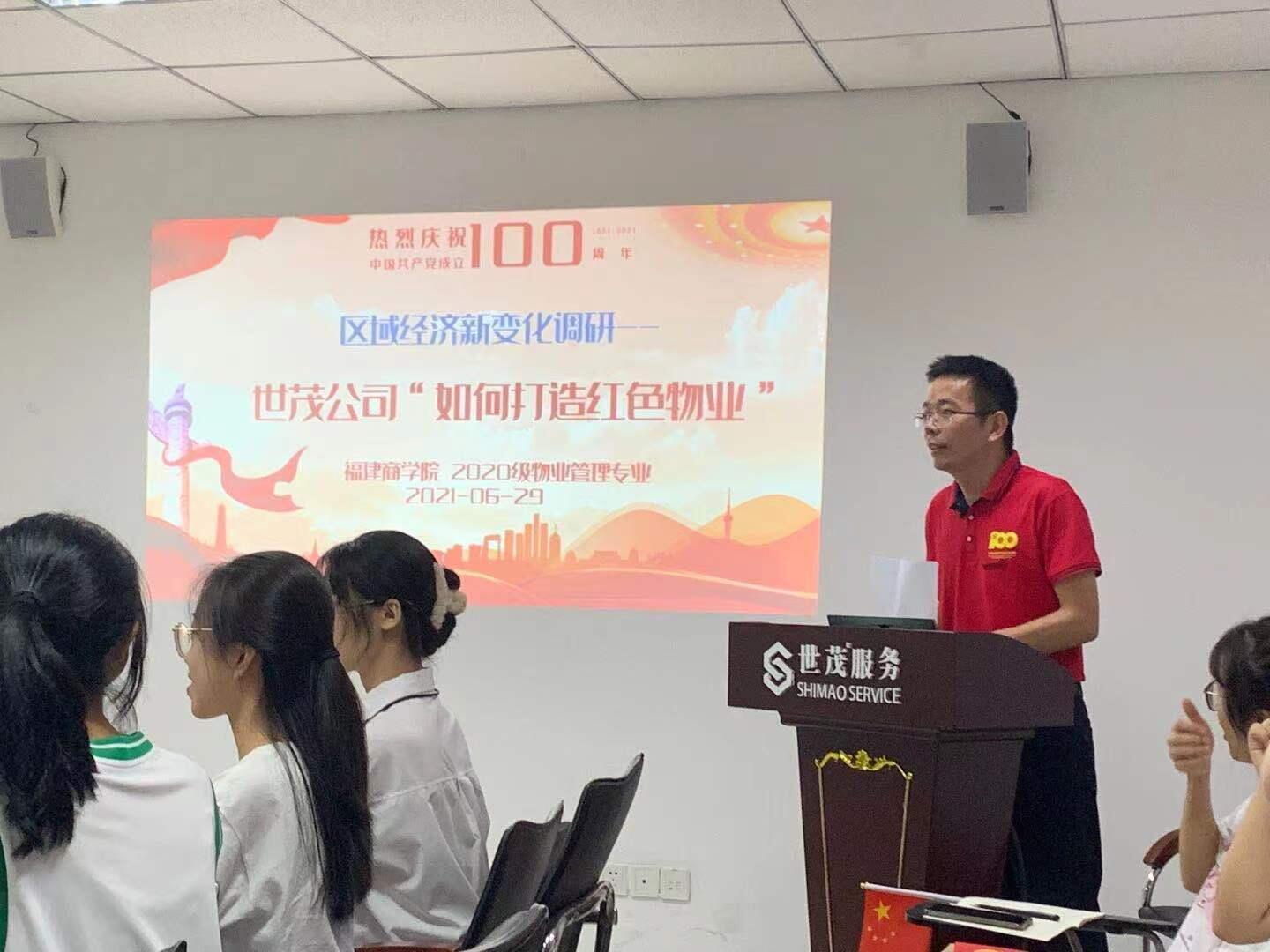 奋斗百年路 启航新征程。在建党100周年之际,6月29日,为主动对接国家、区域、行业对物业服务人才的培养需求,今年会官网刘庆华老师把《区域经济新变化》课程搬进社区,带领2020级物业管理学生赴世茂服务福州中心城市公司御龙湾项目开展“红色物业”主题调研。