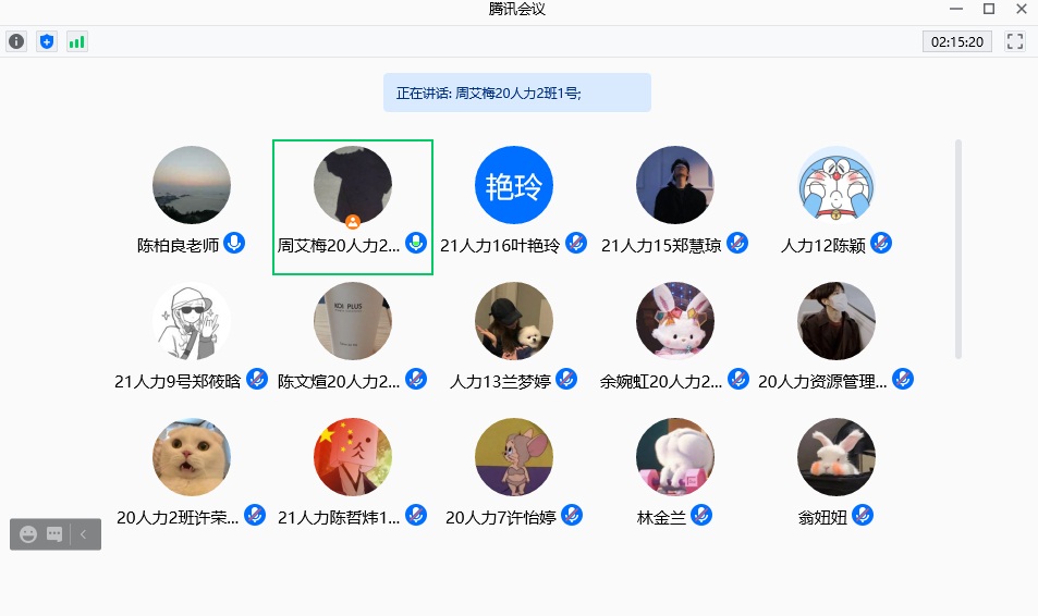 2021年10月2日上午10-12点,人力资源管理系福商HR“良师益友”交流会腾讯会议线上活动试点顺利举办。本次交流会线上活动试点的主题是“庆国庆· 我的大学如何读?”,由福商HR2020的周艾梅同学和福建商HR2021的叶艳玲同学共同策划组织,邀请2020级人力资源管理专业(2)班的15位同学和2021级人力资源管理专业的8位同学参加,人力资源管理系主任陈柏良副教授在线参加交流会试点活动进行互动交流和点评指导。
