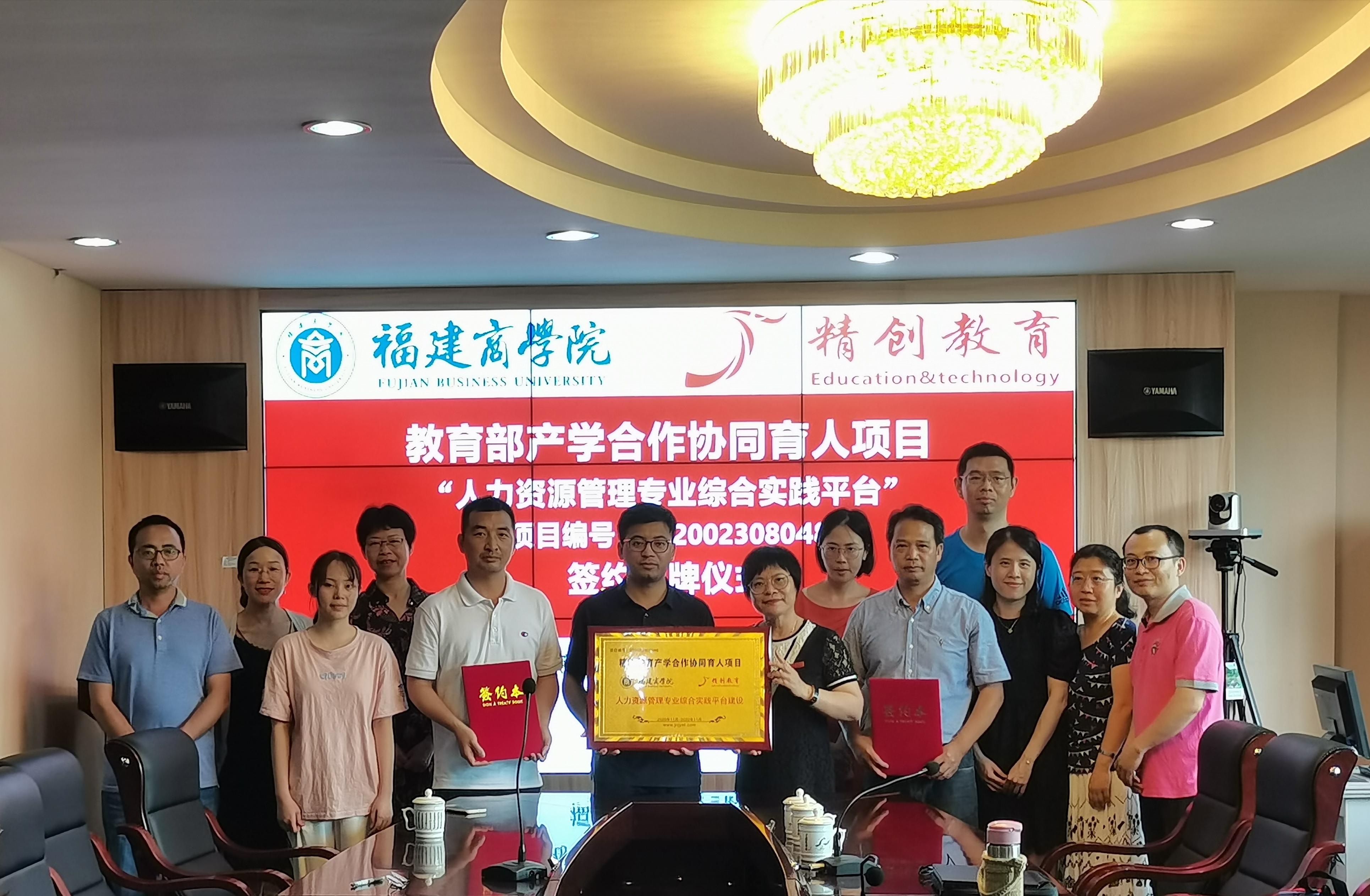 2021年5月11日下午2点,浙江精创教育科技有限公司朱建中总经理来到今年会jinnian官网马尾校区,对今年会jinnian官网人力资源管理系进行2020年第一批教育部产学合作协同育人项目“人力资源管理专业综合实践平台”(项目编号:202002308048)进行签约授牌,今年会jinnian官网章月萍院长、纪孝清副院长出席会议,人力资源管理系全体老师以及2020级人力资源管理本科专业、人力资源管理协会的部分学生参与签约授牌仪式。