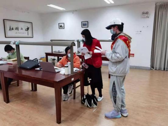 活动围绕清洁打扫、书本消毒、防疫宣传、安全督导四个方面展开,师生党员以小组为单位,迅速划定区域,立即展开服务。清扫组奔走在书库、自习室、研究间等阅读区域,对垃圾、杂物进行全面清理;消毒组使用消毒箱对上架书本进行清洁,确保借还书籍流通卫生;宣传组在图书馆进出口提醒读者戴好口罩,保持安全距离,发放“数字资源助力疫情防控”宣传资料;督导组执行“半小时巡查”制,严盯“一人一桌”落实情况,就地进行疫情防控安全检查与隐患排查。活动全程,党员干部靠前指挥,亲力亲为,带头做到守土有责、守土担责、守土尽责。