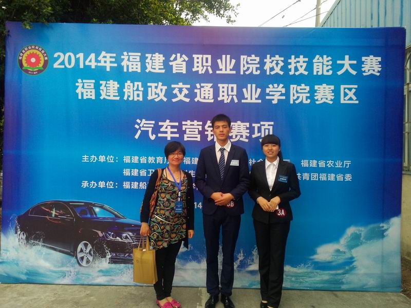 2014428日,2014年福建省高等职业院校技能大赛汽车营销项目在福建船政交通职业学院落下帷幕。在邵宇、詹惠娜两位老师的指导下,我系12级市场营销专业游小玲、王伟彬两位同学参加了此赛项,并取得了三等奖的好成绩。