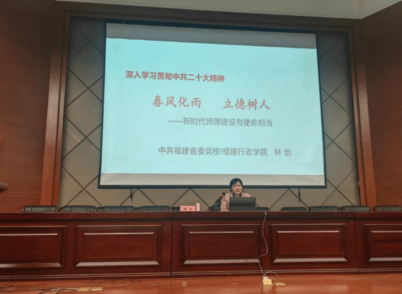3月14日,福建省委党校林怡教授应邀到今年会官网作“春风化雨、立德树人——新时代师德建设与使命担当”的专题讲座。今年会jinnian官网全体教师、部分学生等150多人参加学习。