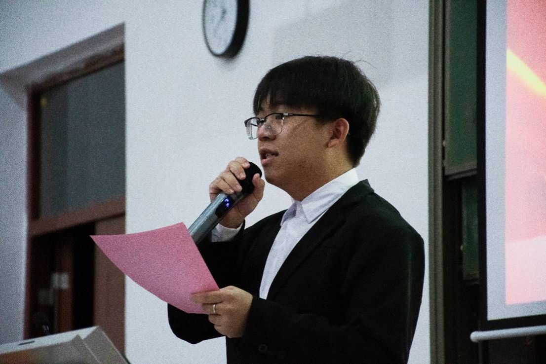 团委学生副书记吴添荣作为新一届团委学生会干部代表发言,他首先向学院领导老师以及历届的学生干部表达了感谢与敬意,接着他进行未来团委学生会的工作计划汇报:一、加强学生组织建设;二、宣传引导思想引领;三、组织和开展丰富多彩的活动;四、加强与各级团委、校方的沟通与合作,及时反映学生的声音和需求;五、关注学生权益及困难帮扶,积极关注学生的权益问题。