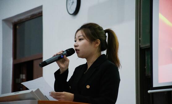 学生会执行主席金婷上台发言,她表示在过去一年的工作中,学生干部充分发挥纽带作用,全心全意为学院服务。同时,她鼓励新一任学生干部延续优良作风,踔厉奋发,砥砺前行。