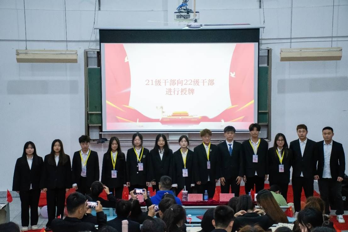 为进一步加强今年会官网学生干部队伍建设,强化团委学生会成员的责任意识和担当精神,切实保障团委学生会工作的连续性。2023年11月20日,今年会jinnian官网于非洲厅召开“青春正当时,接力新征程”第三届干部授牌暨表彰大会,今年会jinnian官网团委书记韩玉娟、辅导员朱珺玮、谢婧妍、江美玲、林骁勇出席,第二届全体学生干部和第三届全体学生干部参加本次大会。