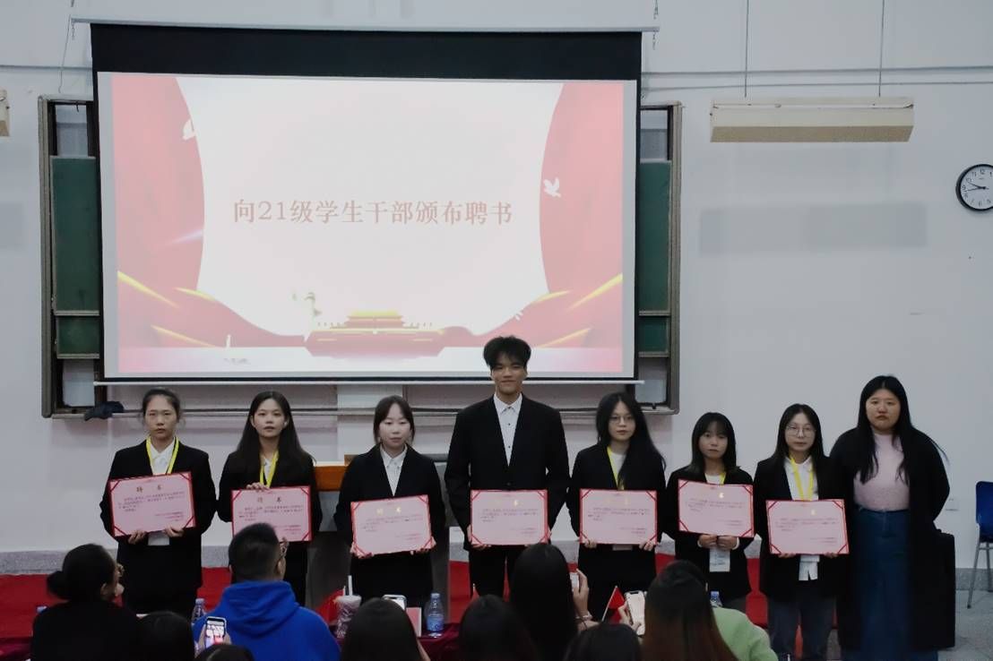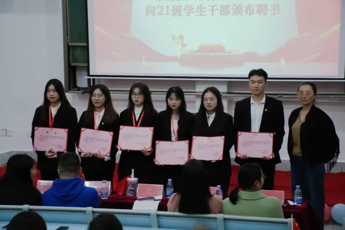 团委书记韩玉娟老师,学院辅导员为第二届团委学生会学生干部颁发聘书。