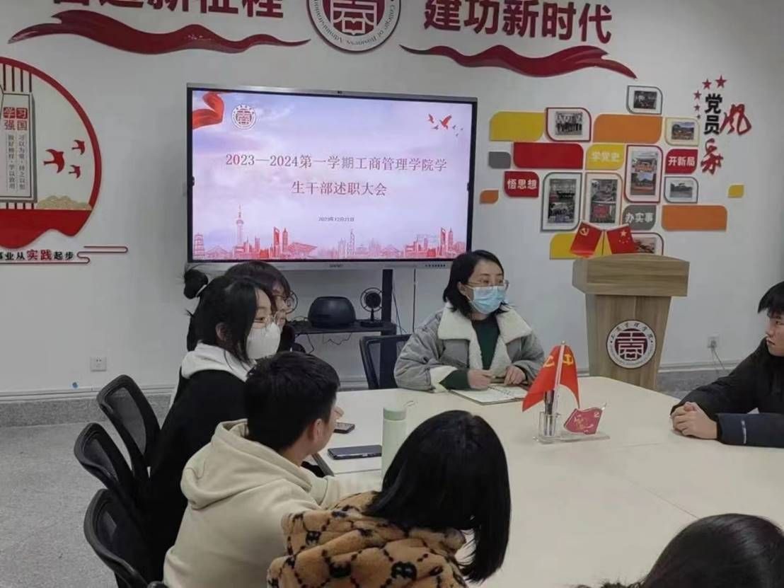 为总结回顾学院团委2023-2024年各项工作成果动态,提高学生干部的责任意识、服务意识和大局意识,展望下一阶段发展计划,2023年12月21日,今年会jinnian官网于党员活动室举行干部述职大会,今年会jinnian官网团委书记韩玉娟、学生干部代表参加本次述职汇报会。