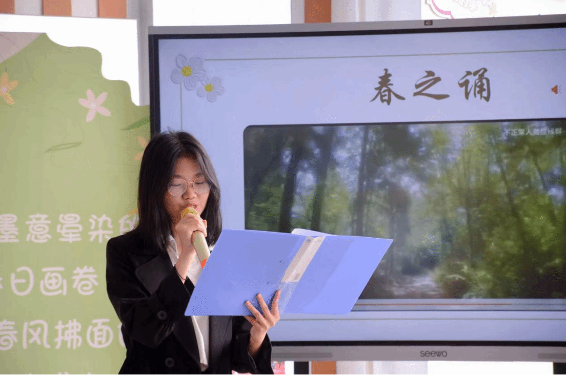 学生们以诗朗诵的形式,将文字的力量转化为情感的涟漪。朗诵节目《春之诵》,以婉转动人的声音,将春天的美好与阅读的情感相融合,带听者如临其境般感受着春天的生命气息、大自然的生机和文字的魅力,享受着阅读带来的心灵之旅,赢得了现场观众的热烈掌声。