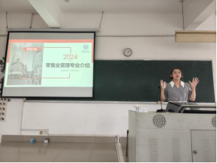 首杨迪主任先对新生的到来表示热烈欢迎,并简单分享了零售业专业的历史沿革及专业在工商管理学科的重要性。随后,她对新生提出殷切的期望,祝愿他们通过大学四年,能够在专业领域获得知识、强化个人能力、提高职业素养。