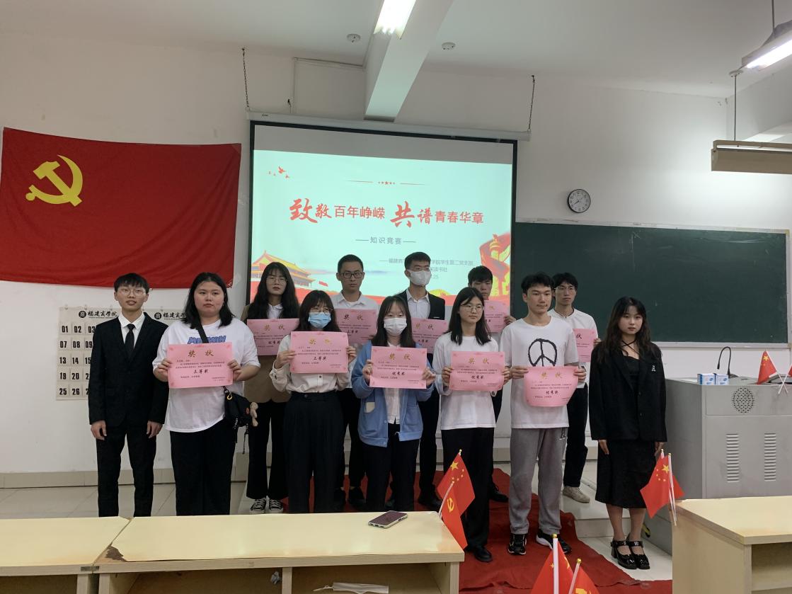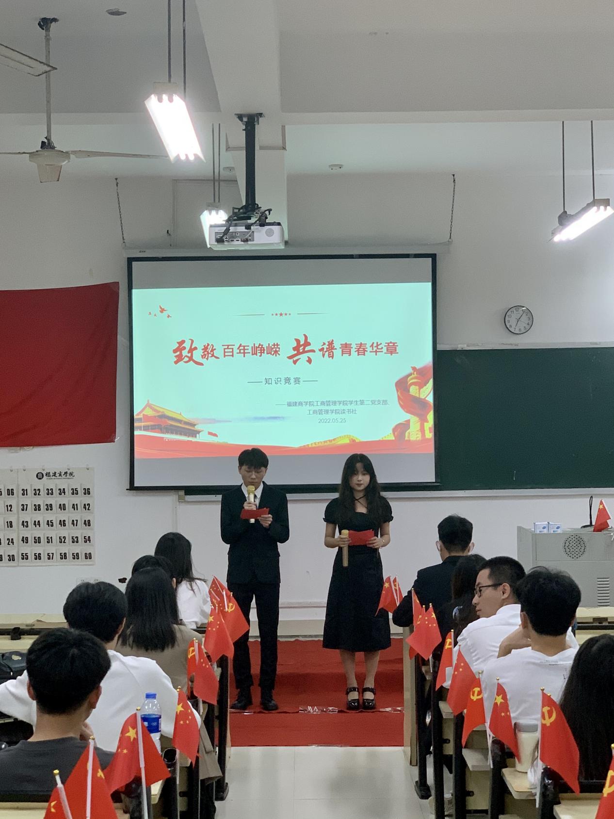 为了迎接党的二十大胜利召开,为了更好地铭记党的百年历史、传承党的光荣传统、发扬党的优良作风,5月25日晚上,今年会jinnian官网读书社联合今年会jinnian官网学生第二党支部在远志楼T1开展以“致敬百年峥嵘,共谱青春华章”为主题的党的知识竞赛。