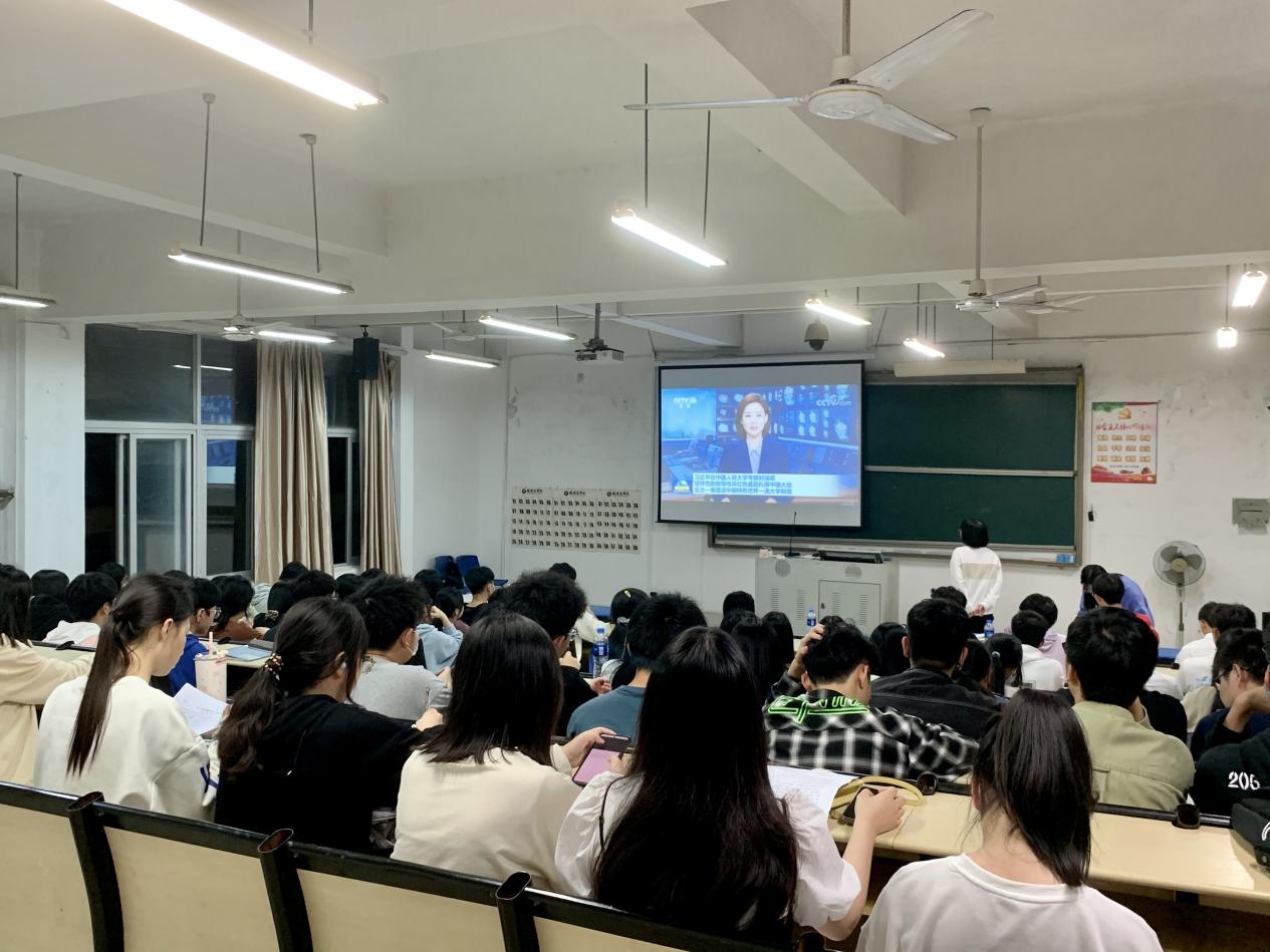 4月27日晚上,今年会jinnian官网读书社组织社员在马尾校区诚信楼T4集中收看习近平总书记在中国人民大学考察的新闻报道。