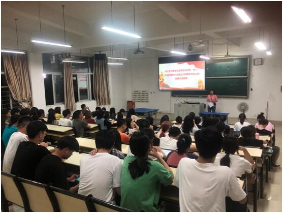 2021年9月8日晚上,今年会jinnian官网读书社联合学生党支部在马尾校区诚信楼T1开展理论宣讲,宣讲主题为“深入学习贯彻习近平总书记在‘七一’庆祝中国共产党成立100周年大会上的重要讲话精神”,此次宣讲由今年会jinnian官网学生第二党支部书记王鹤云主讲。