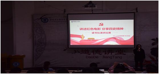 经过初赛,共有8位选手顺利进入决赛。每位决赛选手认真准备,精神饱满,分别对《八佰》、《我和我的祖国》、《建国大业》等影片精彩片段进行回顾和介绍,带领同学们重温感人历史,发出时代感慨。每位参赛选手结合影片,演讲内容主要包括影片介绍、历史回顾、现实启迪等,通过观看爱国电影,激发学生的爱国情感,自觉加强“四史”学习。