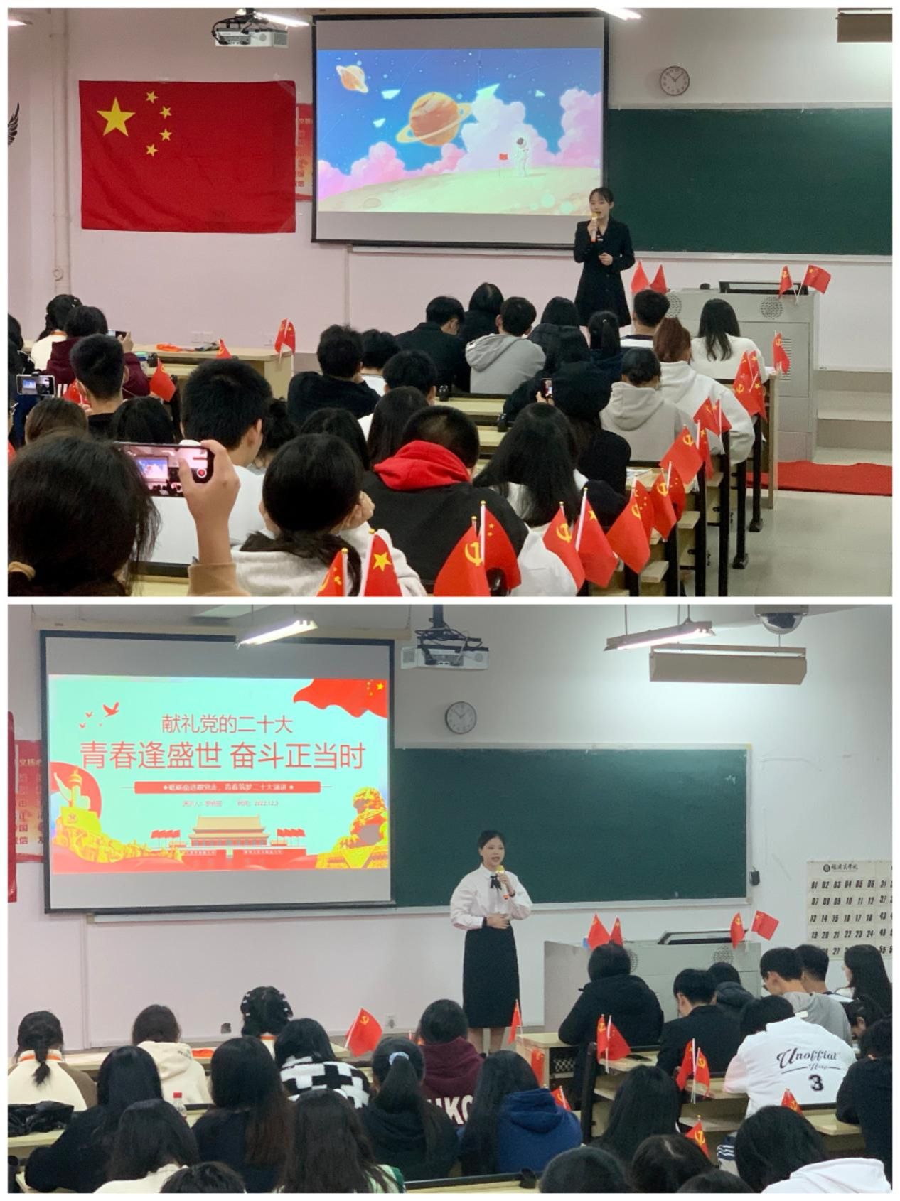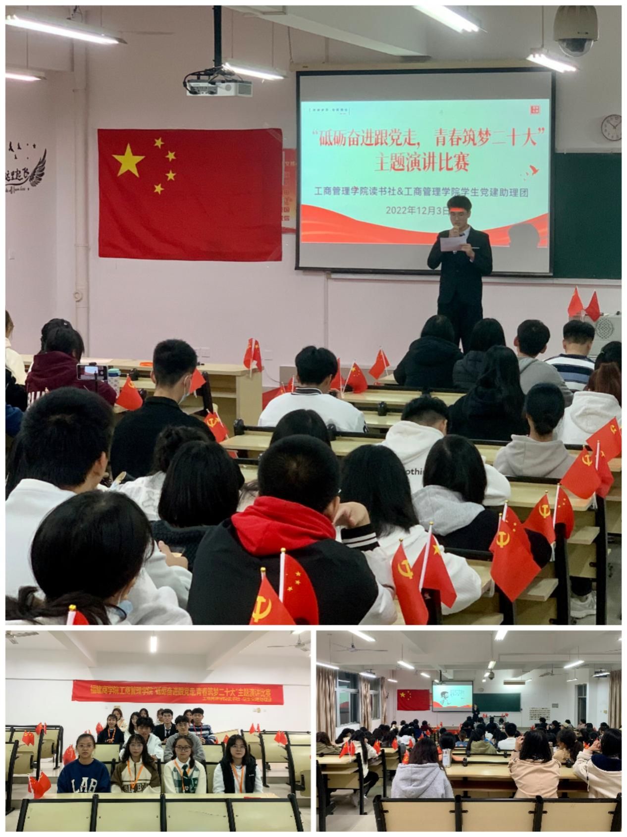 为了深入学习宣传贯彻党的二十大精神,12月3日,今年会jinnian官网读书社联合今年会jinnian官网学生党建助理团举办“砥砺奋进跟党走,青春筑梦二十大”主题演讲比赛。