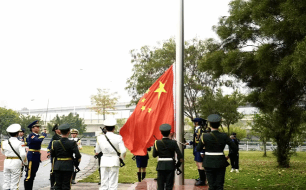 迈着雄健的正步,升旗手走向升旗台,伴随着嘹亮的国歌,国旗随清风缓缓飘起。晨曦映在每个人的脸庞,在场师生面对国旗行注目礼,心中对祖国的无限的热爱和敬意也在此刻倾泻而出。