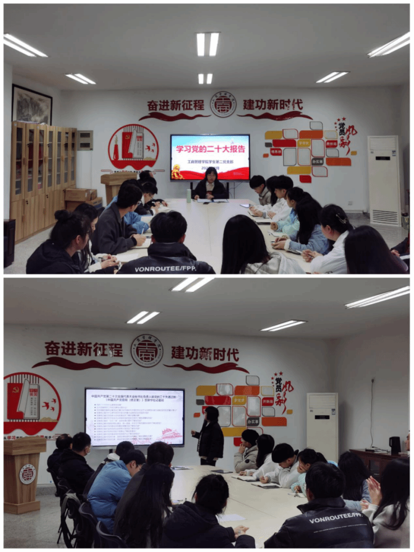 会上,首先集中学习党的二十大报告以及习近平总书记在党的二十届一中全会上的重要讲话精神,结合习近平在学习贯彻党的二十大精神研讨班开班式上发表的重要讲话,强调要正确理解和大力推进中国式现代化。中国式现代化理论,是党的二十大的一个重大理论创新,是科学社会主义的最新重大成果。其次,支部书记讲授党课《学习新党章 践行新使命》。大家积极发言,畅谈学习党的二十大报告和党章的心得体会。吴思锋副书记强调:一要深入学习贯彻党的二十大精神,增强学习主动性,深思细悟;二要学习习近平新时代中国特色社会主义思想及党的历史,提高为人民服务的水平;三要时刻牢记党员身份,平时要主动亮出党员身份,关键时候勇于担当,同时也接受群众的监督;四要积极响应省委部署实施的“深学争优、敢为争先、实干争效”行动号召。