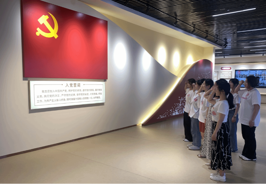 在参观结束后,支部党员在党旗前庄严宣誓,重温入党誓词,再一次表达了忠于党、守初心、担使命的决心!