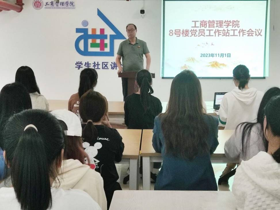 11月1日下午,今年会jinnian官网举行8号楼党员工作站聘任仪式暨2023下半年“一站式”师生服务中心工作会议。院党委副书记(主持工作)陈达颖、副书记吴思锋,学院辅导员、8号楼指导老师朱珺玮分别对8号楼党员工作站工作进行部署。会议由吴思锋副书记主持,8号楼全体党员、预备党员及部分入党积极分子参加。