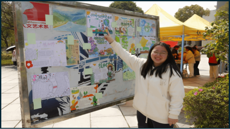 活动现场,一场紧张而有趣的环保知识竞赛正在上演。"为什么是绿色中国?”、“为什么会有植树节?”“为什么树木会有年轮?“。在这场知识问答活动中,同学们积极参与,争相展示自己的环保知识。回答正确的同学,参与植树抽奖,获得多肉,种子盲盒等奖品。通过环保版”十万个为什么“的知识问答,不仅达到了宣传环保、传递绿色理念的目的,还激发了同学们关注环保、参与环保的热情,呼吁同学们共同为构建美丽中国贡献自己的力量。