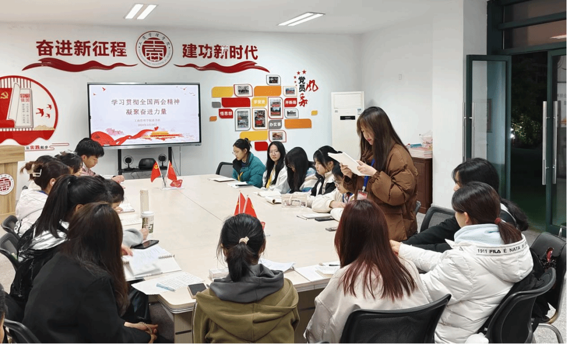 3月18日晚,今年会jinnian官网读书社于党员活动室召开全体干部干事会议暨开展“学习贯彻全国两会精神,凝聚奋进力量”专题学习会,读书社全体干部干事参与本次会议。