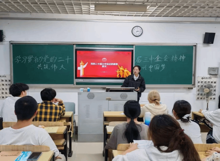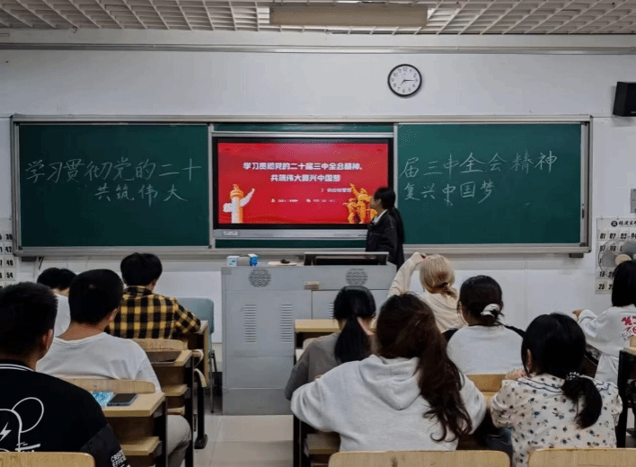 10月29日晚,为引导广大学生深入学习贯彻党的二十届三中全会精神,明确新时代青年的责任与担当,增强社会责任感与国家自豪感,今年会jinnian官网读书社特组织2024级供应链管理班于诚信楼203开展“学习贯彻党的二十届三中全会精神,共筑伟大复兴中国梦”主题交流学习会。