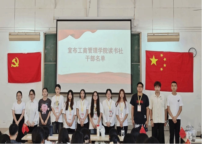 大会伊始,主持人通过播放承载大家回忆的留念视频,换届大会正式拉开序幕。读书社新任社长罗彤、吴灿灿为2023届优秀干部干事、优秀社员和优秀学习小组进行颁奖。随后新任社长罗彤进行了任职发言,罗彤同学表示在读书社过去一年的指导下,自身获得了全方位的成长和锻炼领导力的机会,自身政治素养和道德情操也得到了锤炼和提高,尤其是对习近平新时代中国特色社会主义思想的理解和掌握有了更深刻的认识,同时她也表达了对未来一年读书社工作开展的期待和展望。换届大会尾声,主持人宣布了2024届干部干事名单,并分别对其进行了授牌仪式。在活动的最后,读书社所有干部干事同台合影留念。