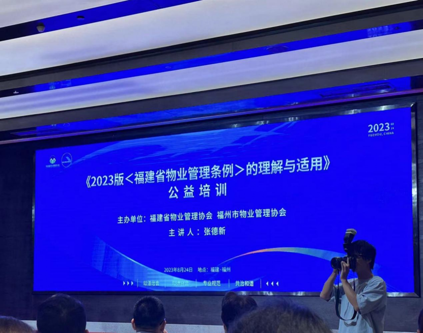 为贯彻落实今年7月26日起实施的《福建省物业管理条例》,提高我省物业服务行业从业人员对《福建省物业管理条例》法条标准的统一认识和理解,结合物业公共收益“点题整治”工作,规范小区公共收益管理,推动物业管理和基层社会治理有效结合,福建省物业管理协会联合福州市物业管理协会于8月24日(星期四)共同举办《2023版<福建省物业管理条例>的理解与适用》公益培训。(以下对《福建省物业管理条例》简称条例。)
