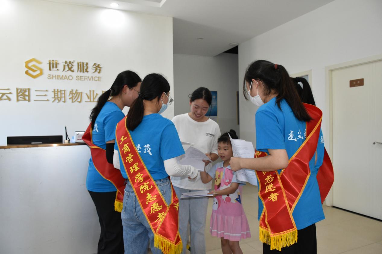 在工作人员的带领下,实践队一行开展了见习工作。正在世茂就职的校友就产业发展前景、职业生涯规划、管培生计划等问题做了说明。在见习环节,学生们与业主沟通,并通过问卷调查的方式了解他们对物业管理的了解。经过学生的共同努力,实践活动圆满完成。