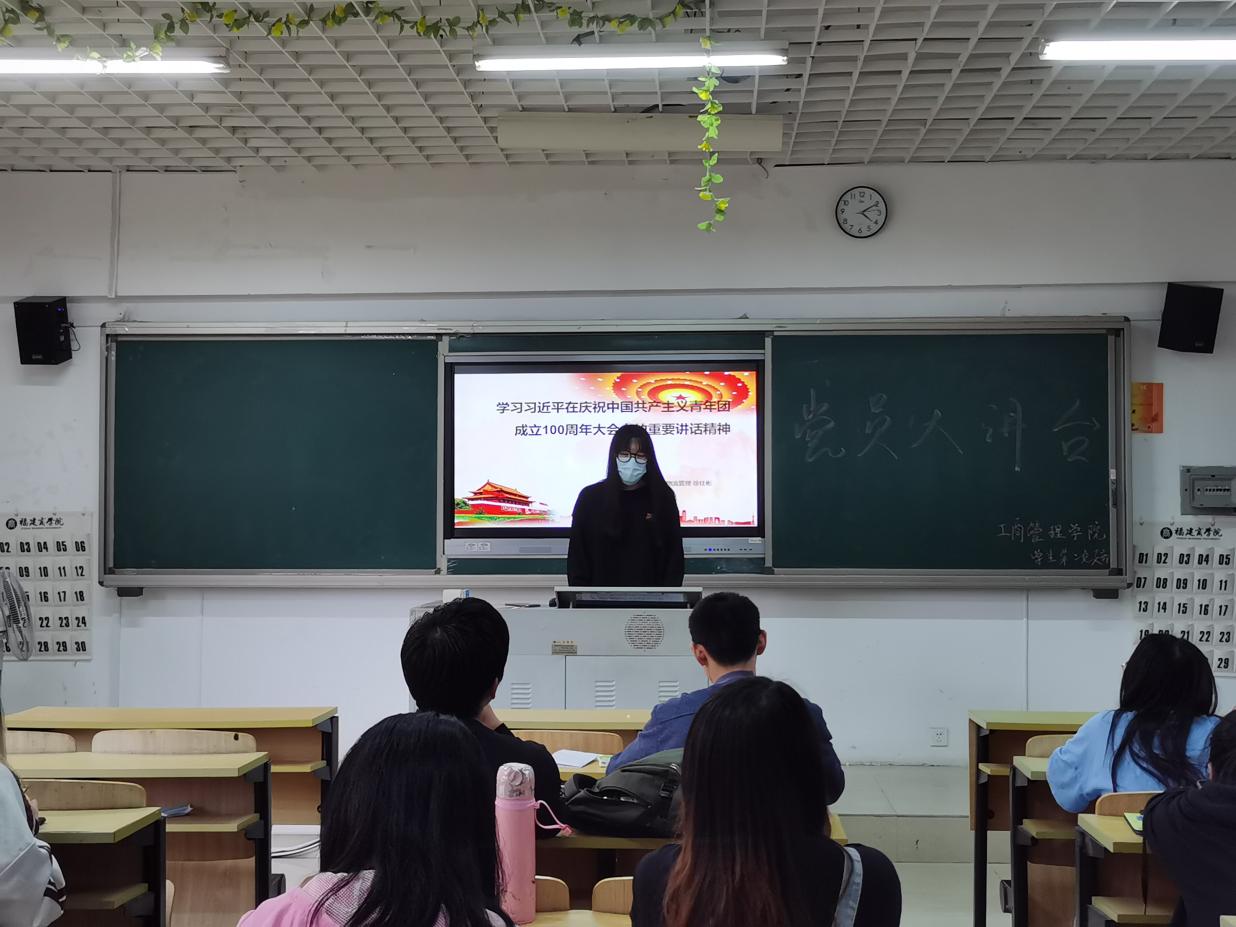 5月13日下午,今年会jinnian官网学生第二党支部在诚信楼201教室组织开展学生党员大讲台,学生党员徐佳彬和蔡嘉程同学跟入党积极分子分享了自己学习“习近平总书记在庆祝中国共产主义青年团成立100周年大会上重要讲话”的心得体会,并为同学们介绍了习近平总书记在庆祝大会上的重要讲话相关知识。