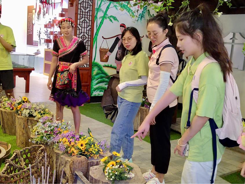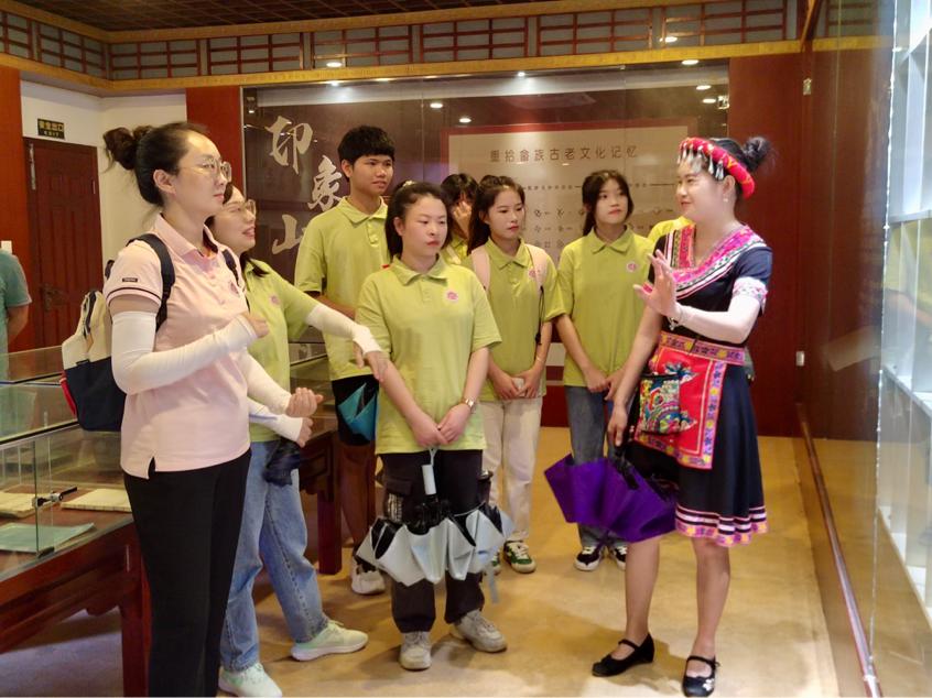 6月27日下午,“源来是你”实践队在团委书记韩玉娟和辅导员许艳萍的带领下,追随习近平总书记的脚步来到霍口畲族乡福湖村,探索民族文化产业。 实践队到达霍口乡福湖村。在当地讲解员的带领下参观民俗文化纪念馆、雷家大院、蓝家大院和福湖武工队旧址等,边看边听边记录,深入了解畲族革命史、畲族服饰、畲族婚礼、畲医畲药、畲家拳等民族特色文化和特色产业,近距离感受畲族文化的独特魅力和畲家的别样风情。