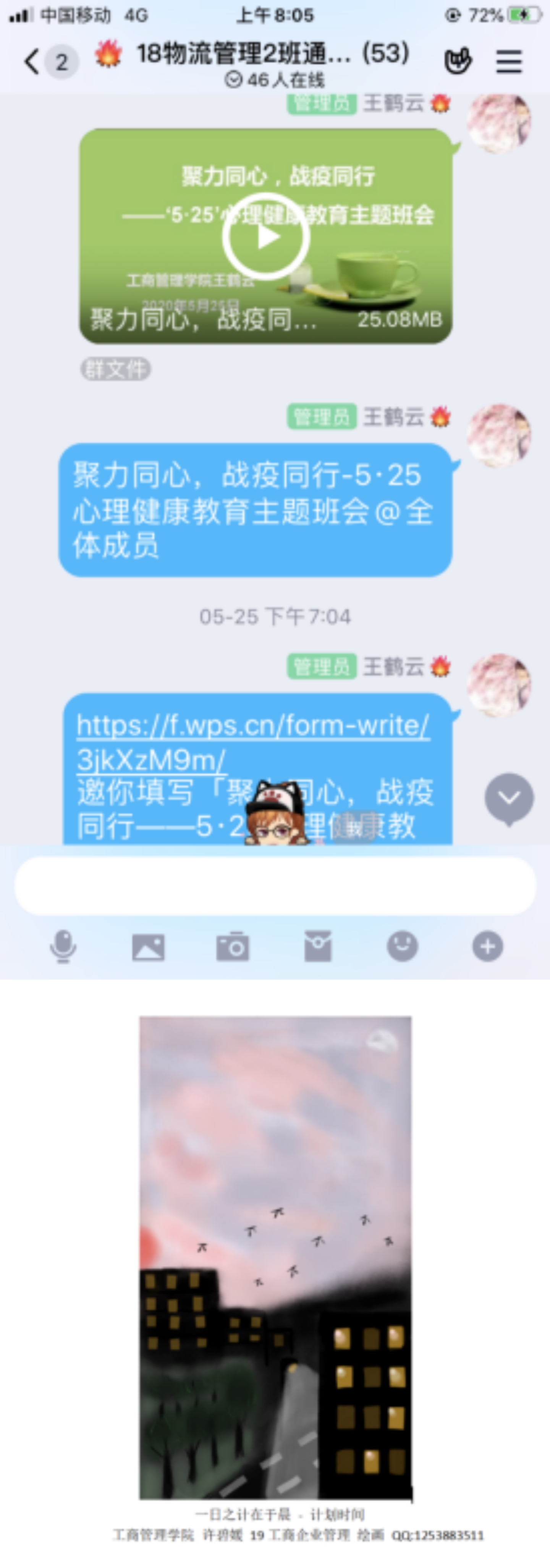 2020年5月,今年会jinnian官网各班级围绕学校“5·25”大学生心理健康月系列活动方案以及《关于进一步加强复学前后学生心理健康教育的通知》积极开展网络心理健康教育主题班会,目的是为了做好心理健康知识宣传与教育,引导学生正确处理压力、人际、情绪情感问题;帮助学生调整好心态,积极面对疫情防控下的生活、学习、工作等问题。