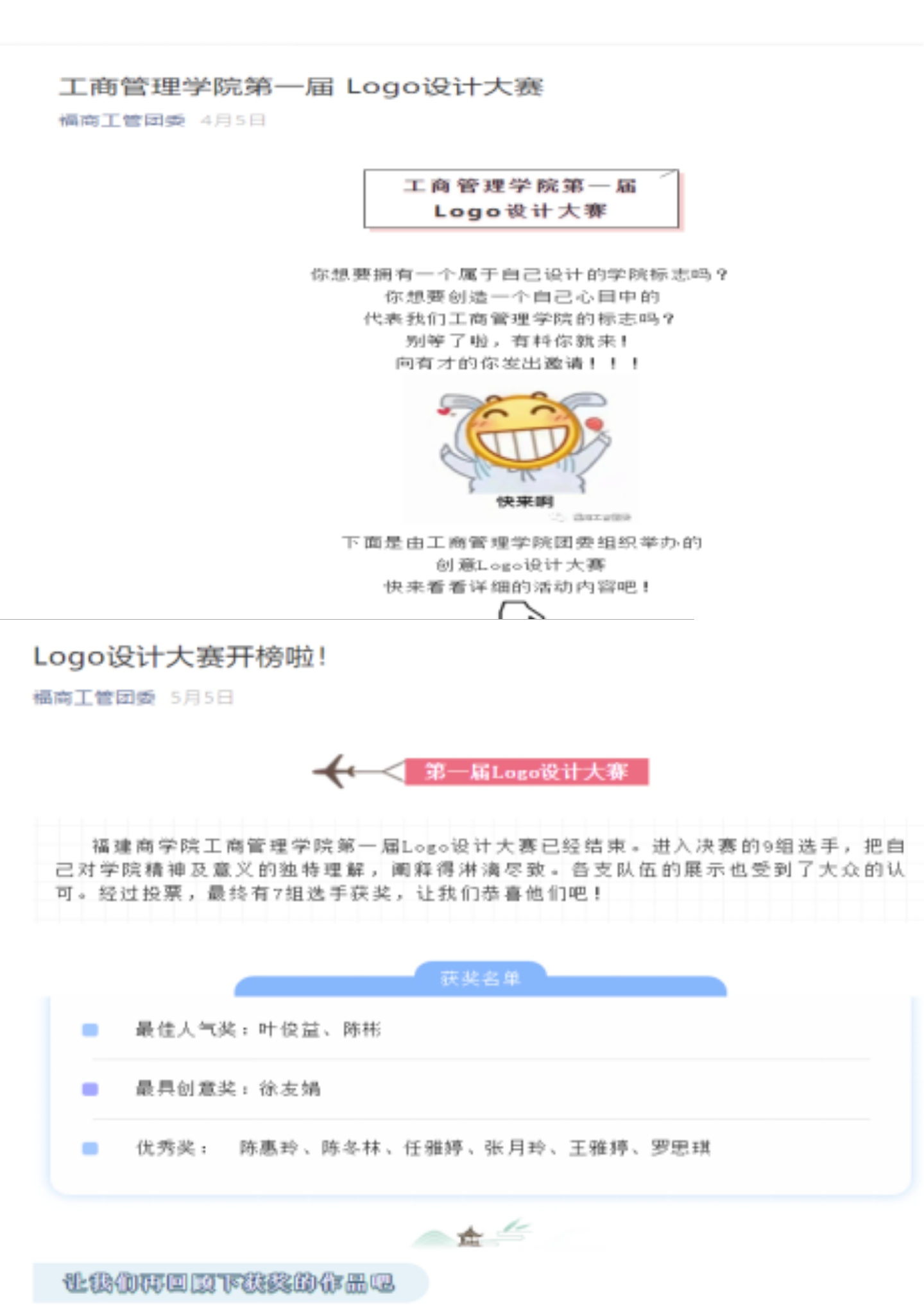 为丰富同学们的校园生活,培养学生的艺术设计思维,今年会jinnian官网于4月6日至4月28日举办今年会jinnian官网第一届线上LOGO设计大赛。