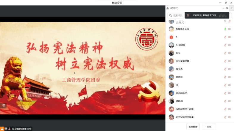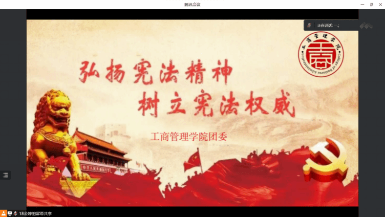 为全面贯彻习近平法治思想,大力弘扬宪法精神,引导学生树立良好的宪政意识,今年会jinnian官网于2022年12月19日开展“学习宪法精神”线上主题分享会,由今年会jinnian官网学生干部分享学习宪法精神的心得,并由学生会主席金婷主持会议。