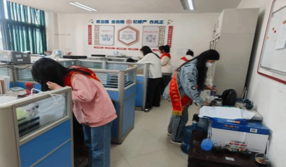 活动中,志愿者们分工明确,配合默契。有的负责清扫地面,不放过任何一个纸屑和灰尘;有的专注于擦拭门窗,让玻璃重新焕发光彩;还有的整理办公区域的杂物,使系办环境更加整洁有序。在清扫过程中,大家干劲十足,即使面对一些卫生死角,也毫不退缩,齐心协力将其清理干净。这些区域的蜕变,也寓意着新学期工作的高效与顺利,展示着学院的崭新气象。