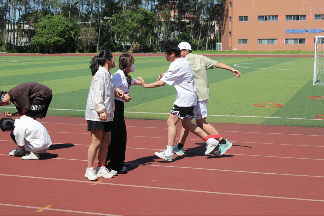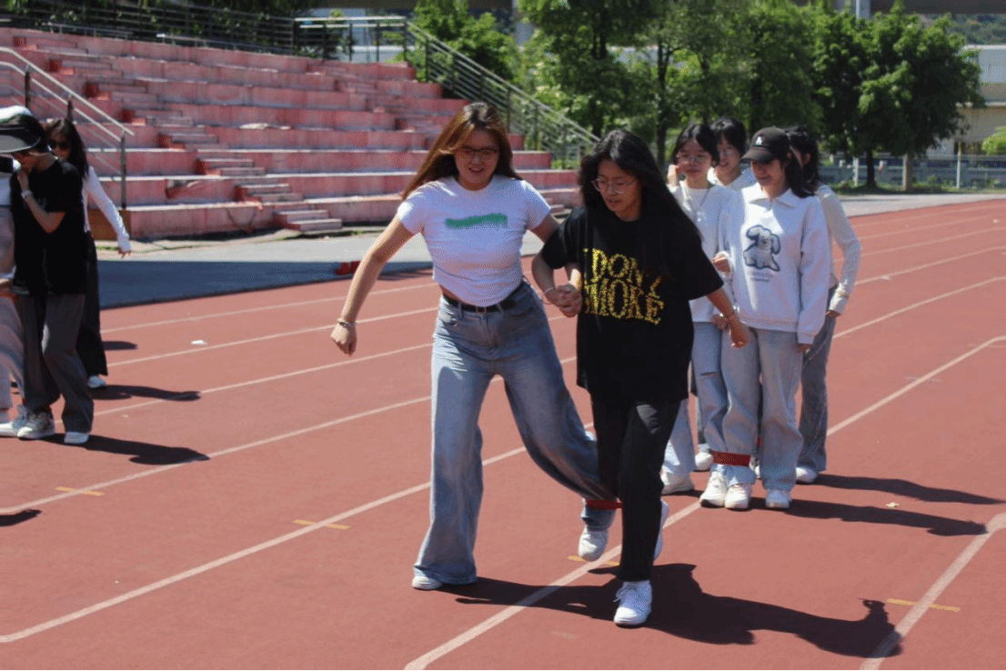 本次趣味运动会设有多个趣味项目,如“并肩齐行”、“默契搭搭搭”、“快乐转圈圈”和“桃花朵朵开”。项目的设置旨在让学生在团队协作与竞争挑战的过程中释放自身压力,改善情绪状态,提升自我效能感,促进学生身心健康发展。